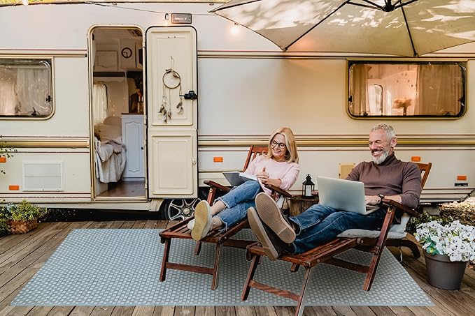 Mad Mats Geometric Outdoor Rug, Reversible Plastic Mat (6' x 9', Basket Weave - Sand/Aqua)