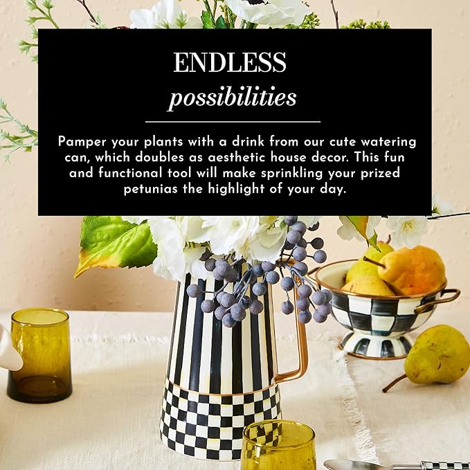 - ELEGANT OUTDOOR GARDENING TOOL: Our Spectator rustic watering can features black-and-white color-dragged checks with a long pour spout and handle. The pattern creates classic charm to complement a variety of decor.