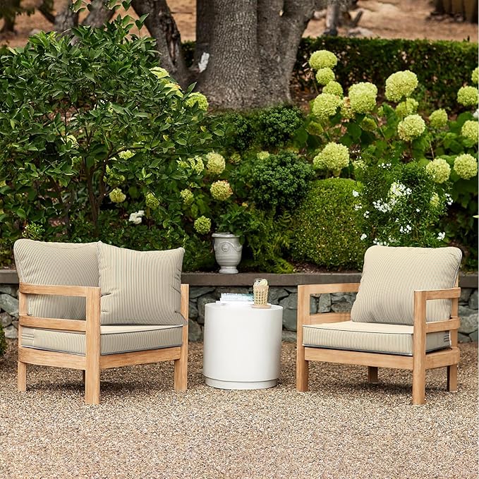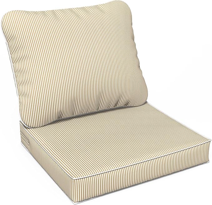 LVTXIII Outdoor Deep Seat Cushion Patio Seat and Back Cushion Set Seasonal Chair Cushion with Removable Cover and Adjustable Buckle for Home and Garden, 24"x24"x4", Strip Beige