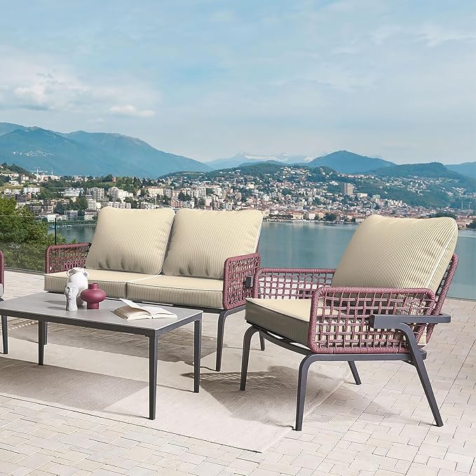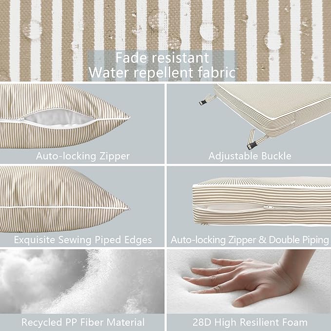 - ⭐Material: Made of 100% durable polyester fabric and soft filling material. It’s water repellent and fade-resistant. Won’t fading under the direct sunlight over 500 hours. Cushions are filled with 28D high resilient foam, overstuffed construction for enhanced comfort and longevity.