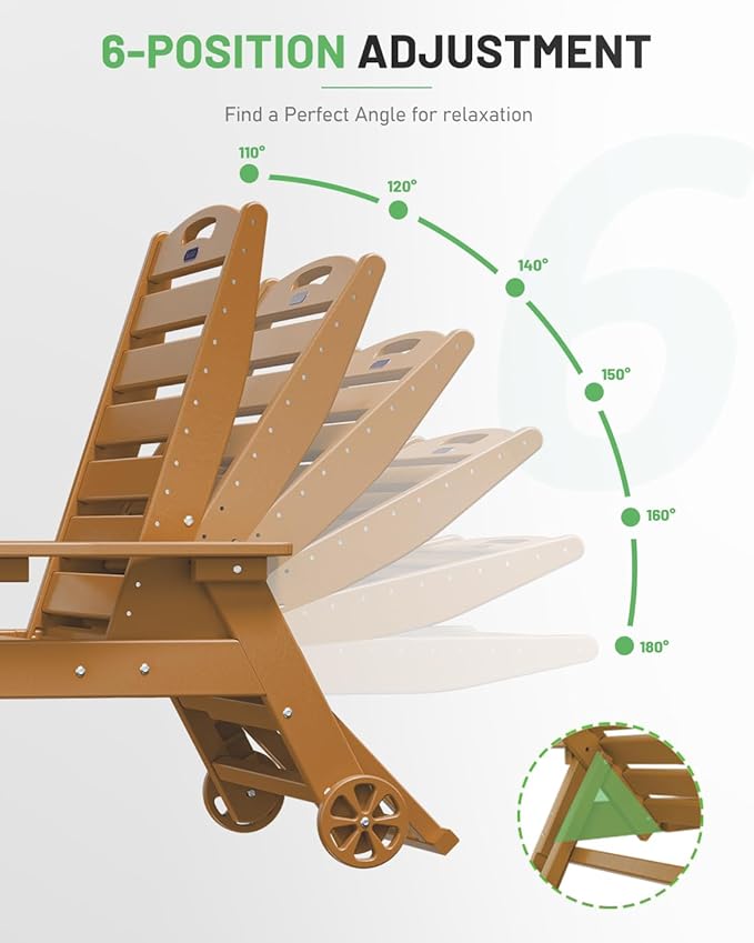 - Premium Suunyn HDPE: The polywood chaise lounge are made from high-density HDPE, which bends slightly under heavy weight or high temperature but returns to its original shape when the weight is removed or the temperature has dropped. This durable material withstands harsh weather and is easy to clean