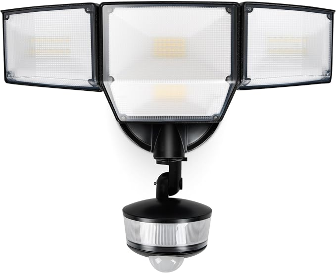 - 【MOTION SENSOR FOR ADDED SECURITY 】Equipped with a high-sensitive motion sensor, this floodlight detects movement up to 59 feet away with a 180° detection angle. When movement is detected, it automatically activates the light, ensuring immediate illumination and enhancing security for homes or businesses.