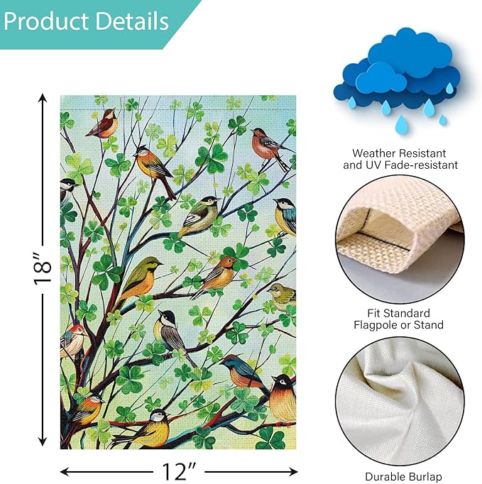 - For St. Patrick's Day Home Garden Decor: Adorned with charming shamrocks and birds pattern, our garden flag adds a festive touch to your outdoor space. It’s perfect for welcoming guests and enhancing your St. Patrick's Day celebrations.