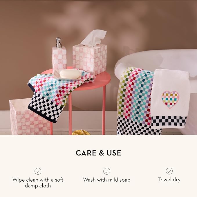 MACKENZIE-CHILDS Enamel Garden Pot, Decorative Pot for Plants, Outdoor Flowerpot Decor, Small, Pink-and-White Rosy Check