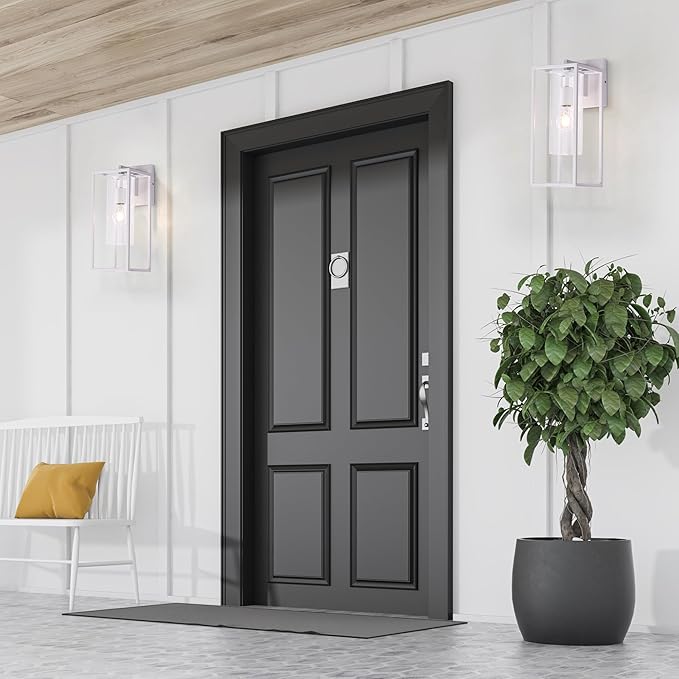 - 【Clear Tempered Glass Shade】This outdoor wall lantern is different from ordinary glass wall light. It uses upgraded tempered detachable square glass, which is not easy to be brittle or fragile, stable enough and very durable. This design convenient the replacement and cleaning of glass and bulbs.