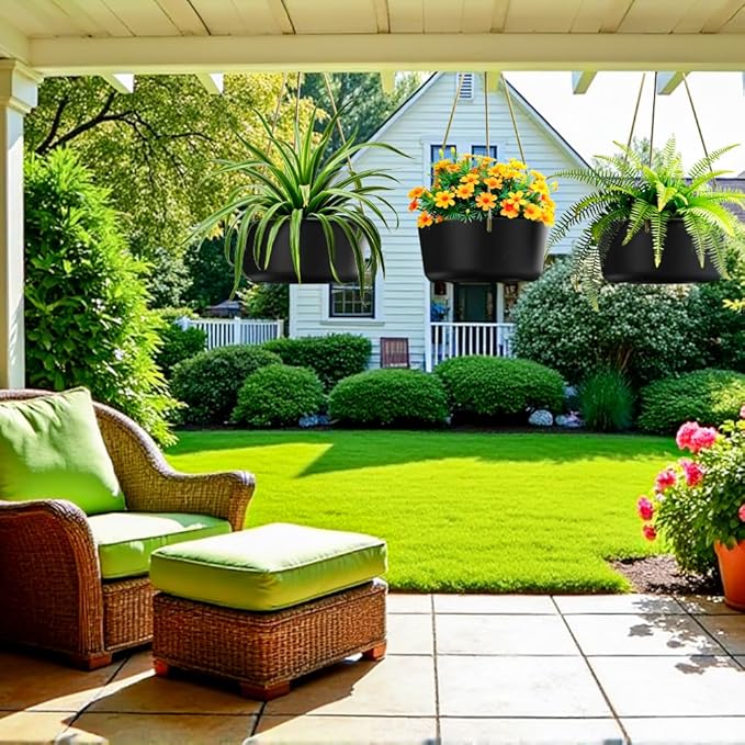 - Drainage Holes and Plugs: A water outlet is designed in the middle of the bottom of the hanging flower pots, helping prevent root rot and keeping your plants healthy. Coming with removable rubber plugs to ease the concern of overwatering for your indoor outdoor plants.