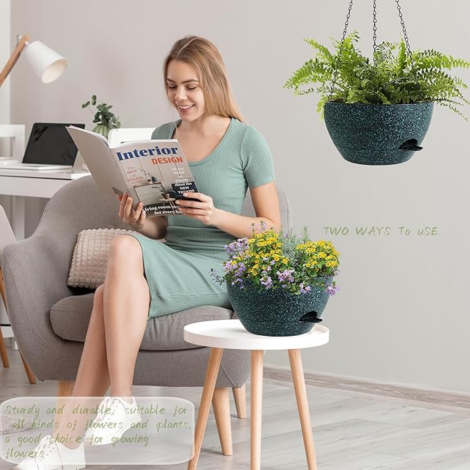 - 【Self-Watering Hanging Flower Pots with Removable Saucer】the appearance and structural design of the Hanging Pot prevents overwatering and acts as a water reservoir to promote Plant growth. It is suitable for a variety of Hanging Pot Plants, such as ivy, Herbs, Ferns, Philodendrons, Succulents, Flowers or other Plants