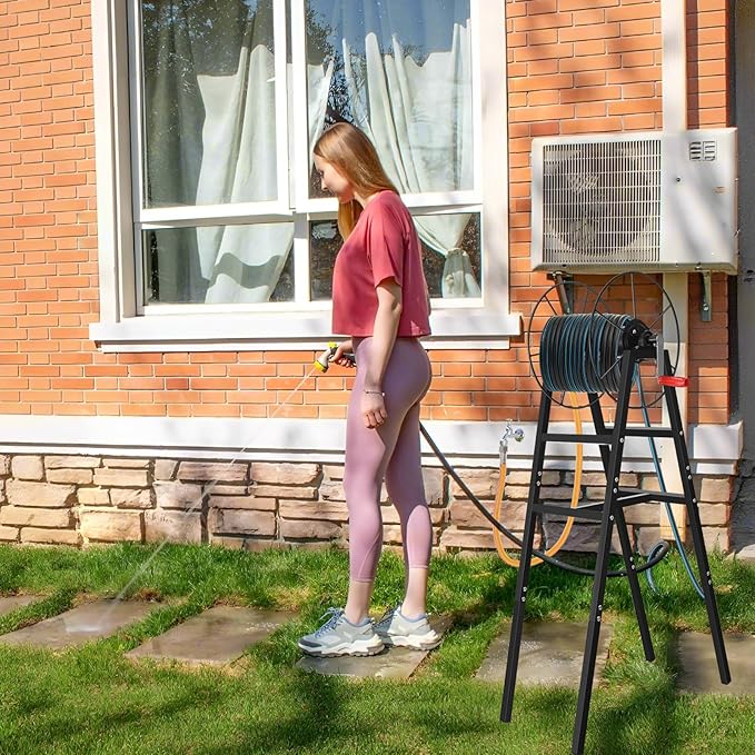 - 【Effortless Retraction System】 – The heavy-duty metal crank handle ensures smooth, easy winding. The ergonomic 50-inch (127cm) height with non-slip grip allows comfortable operation without bending over. No more messy hand-coiling – enjoy tidy, effortless hose storage!