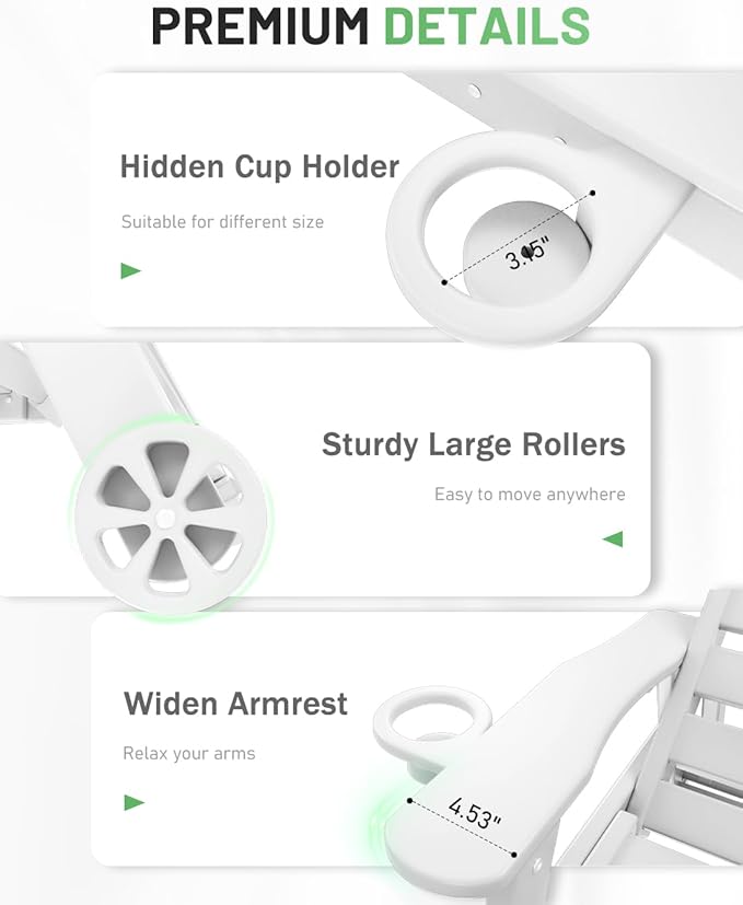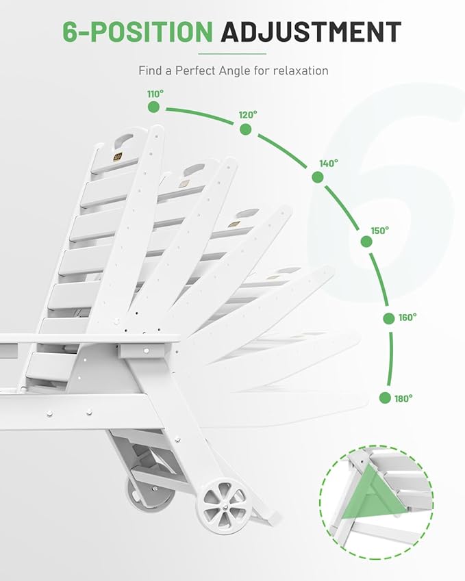 - Premium Suunyn HDPE: The polywood chaise lounge are made from high-density HDPE, which bends slightly under heavy weight or high temperature but returns to its original shape when the weight is removed or the temperature has dropped. This durable material withstands harsh weather and is easy to clean